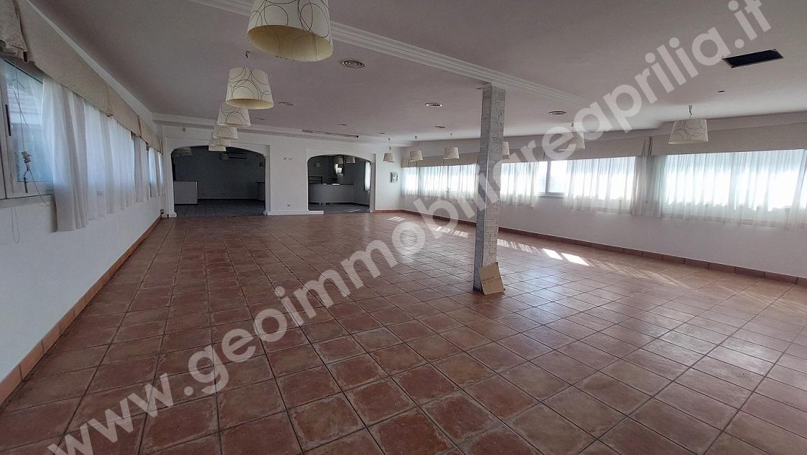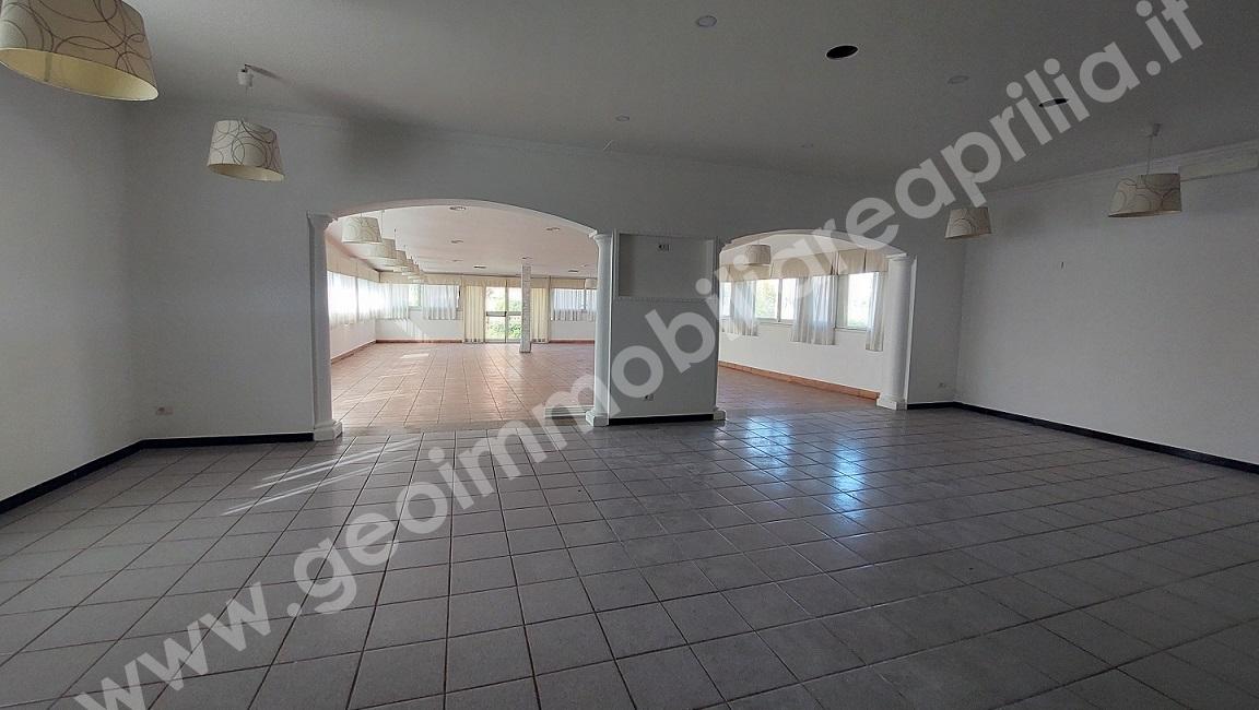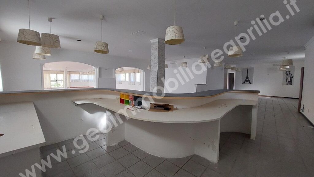 Locale Commerciale con Ampio Piazzale Aprilia – Via Guardapasso – Geo Immobiliare propone in affitto un Locale Commerciale di 372 mq. con un ampio piazzale di circa 1.000 mq, situato fronte strada ad alto transito, ideale per garantire alta visibilità e facilità di accesso. L’immobile, precedentemente adibito a ristorante, offre una disposizione spaziosa che include un ingresso, due ampie sale, servizi igienici con antibagno per la clientela, un ripostiglio, una cucina attrezzata con forno a legna, servizi igienici per il personale e un locale dispensa.