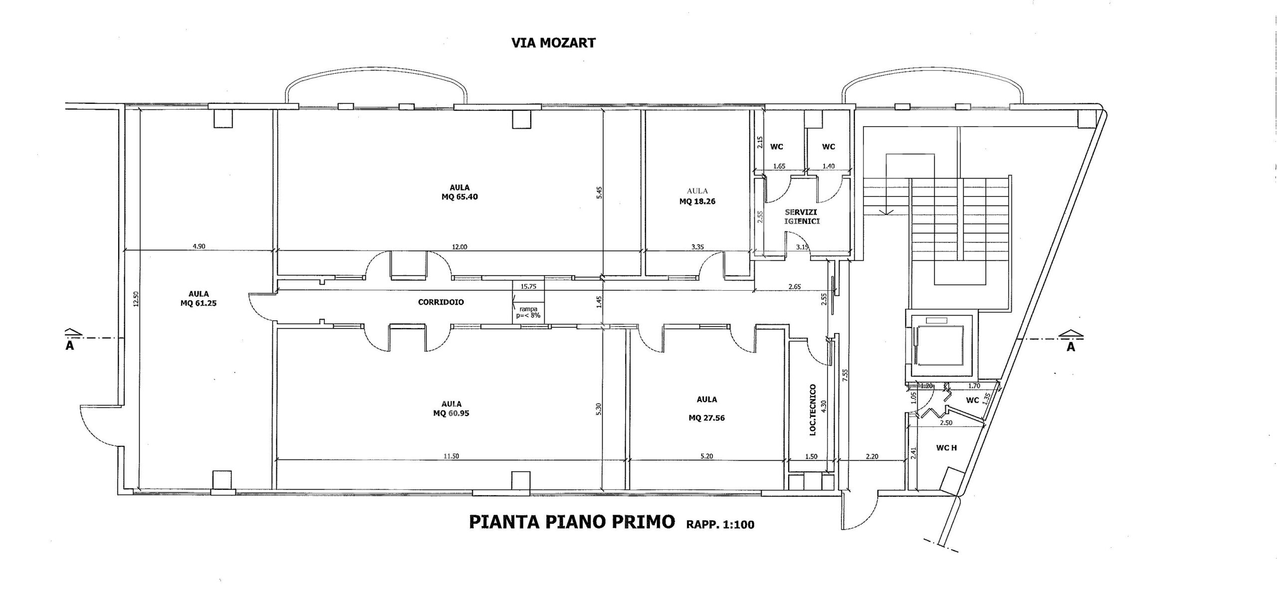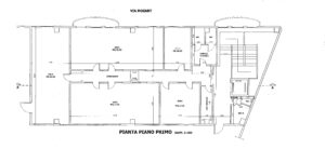 Il primo piano offre un’elegante atmosfera professionale con un corridoio d’ingresso, doppi servizi, tre ampi ambienti da 60/65 metri quadrati ciascuno, una stanza di circa 27 metri quadrati e un’altra di circa 18 metri quadrati.