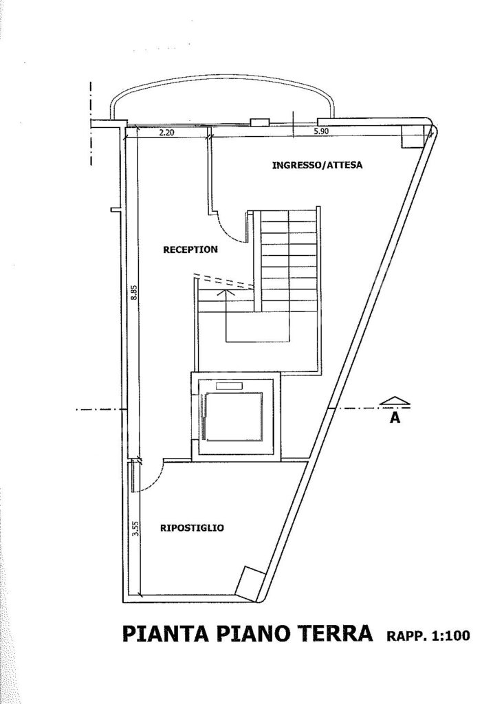 Al piano terra, un’accogliente sala d’attesa, una moderna zona reception e un pratico ripostiglio accolgono i visitatori. Le scale, oltre all’ascensore, conducono al primo piano, accessibile anche tramite una comoda rampa carrabile che permette il parcheggio di numerose vetture nel vasto piazzale esterno di circa 700 metri quadrati.