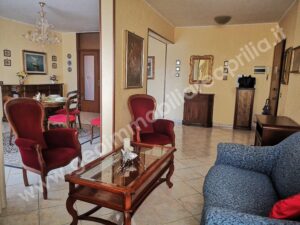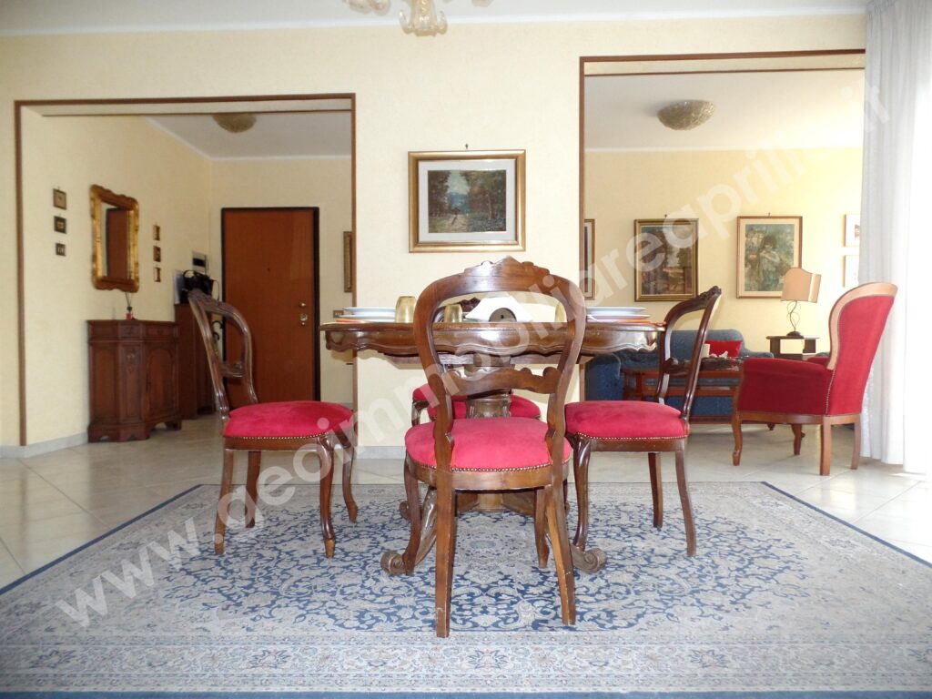 L’appartamento è composto da un Ampio salone che, grazie ad una parete divisoria, è stato suddiviso in due ambienti ben distinti: da un lato un’area accogliente per pranzi e cene, dall’altro uno spazio perfetto per il relax con i divani. Vista la generosità delle dimensioni del salone, per chi necessità di ulteriore spazio, potrebbe realizzare la terza camera da letto oppure uno studio.